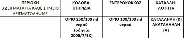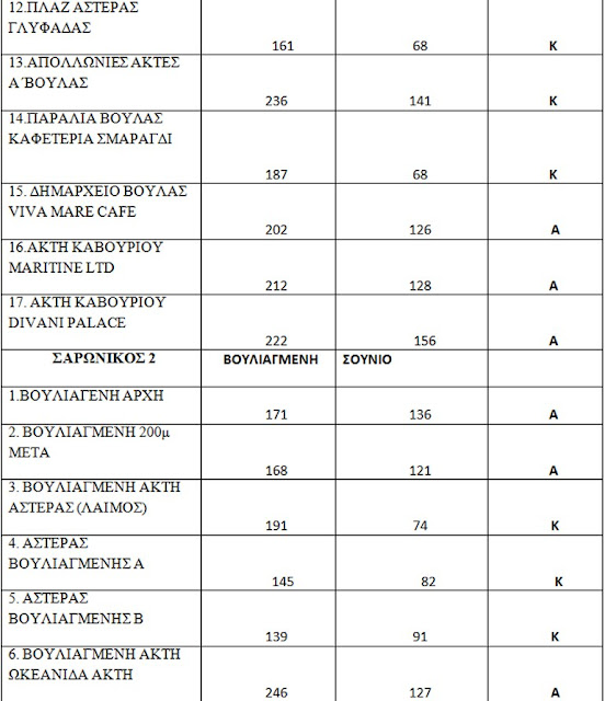 - στην ανατολική Αττική από τον Σχοινιά έως το Λαύριο κρίθηκε το 23,3% των ακτών ακατάλληλο σε σύνολο 31 ακτών που αναλύθηκαν.